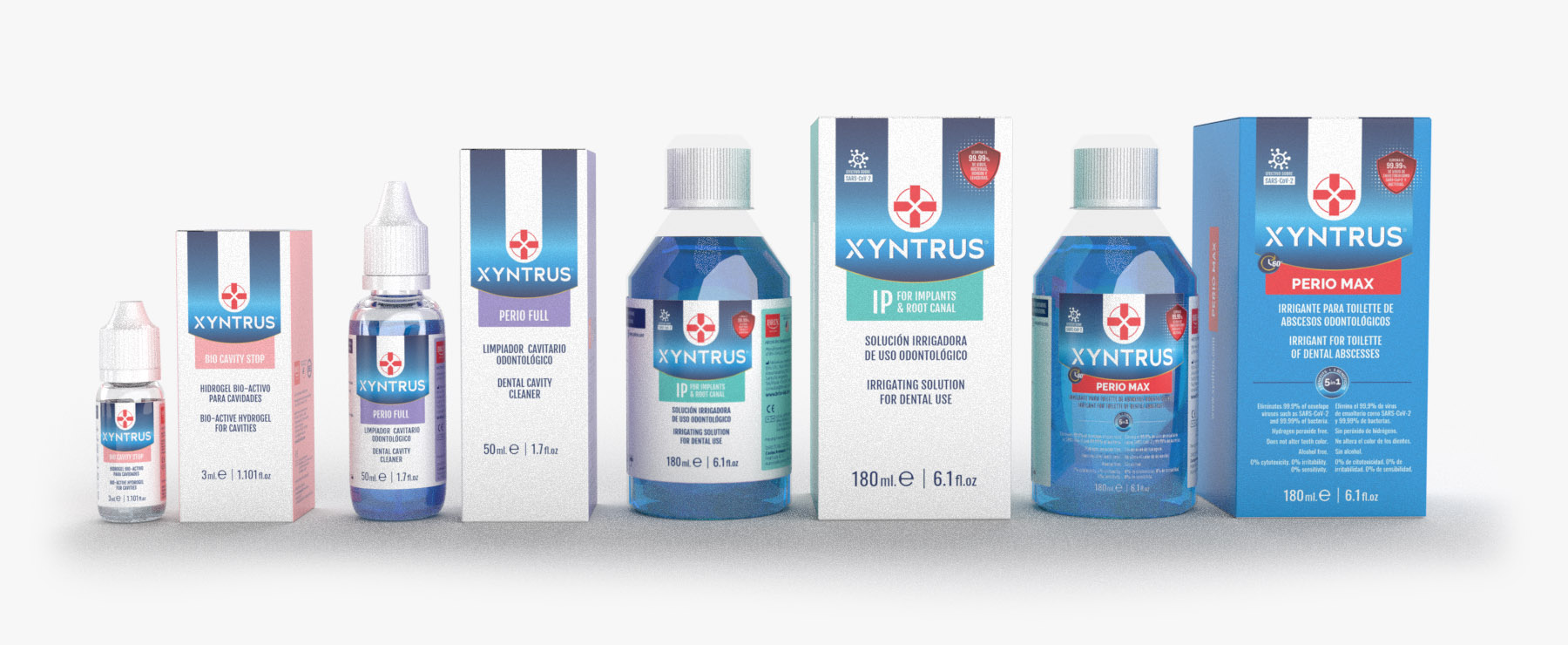 La línea de productos innovadores Xyntrus, ofrece una variedad de soluciones antisépticas de alta eficacia para diversos tipos de tratamientos odontológicos.