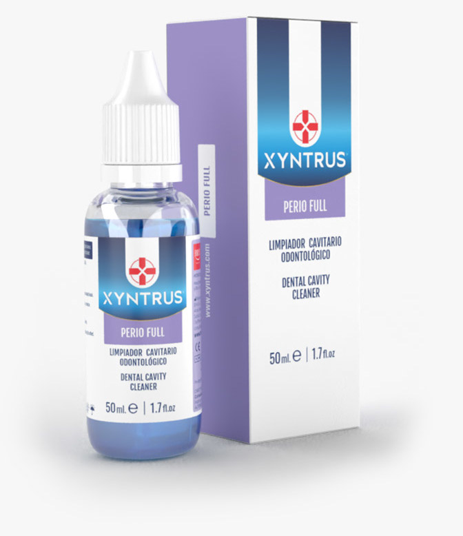 Ofrece la posibilidad de eliminar bacterias y gérmenes presentes en cavidades dentales, antes de colocar el material de restauración, lo que es indispensable para eliminación del barro dentinario adherido a las paredes cavitarias y así lograr su correcta adaptación y evitar la filtración marginal. Además, XYNTRUS PERIO FULL, actuará con una eficacia mayor al 99,99% sobre los microorganismos residuales presentes en la cavidad.